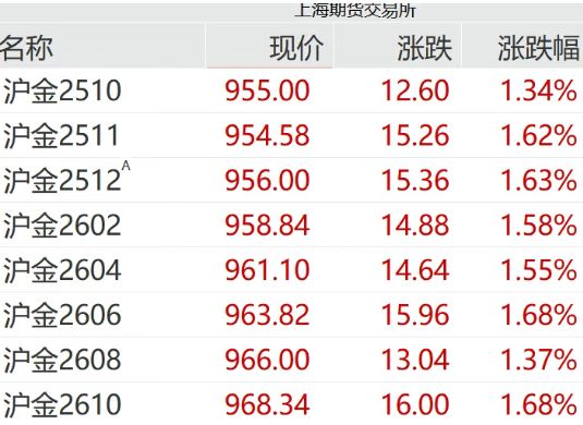 国内沪金主力合约集体走高,涨幅均超1%。